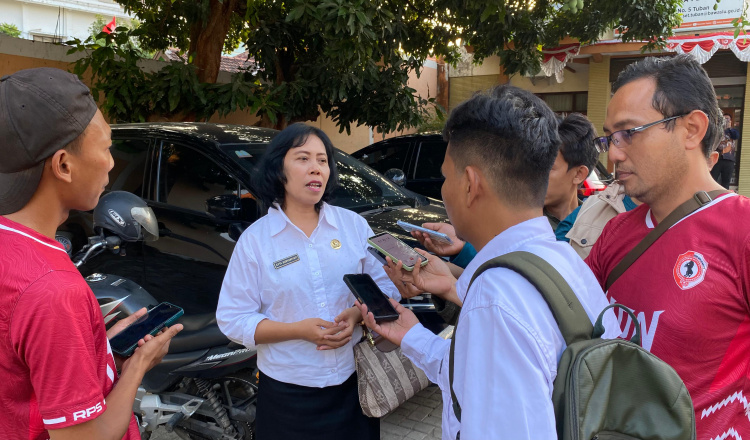Kabag Hukum Pemkab Tuban, Cyta Sorjawijati, saat diwawancara wartawan usai berkoordinasi dengan Bawaslu setempat.