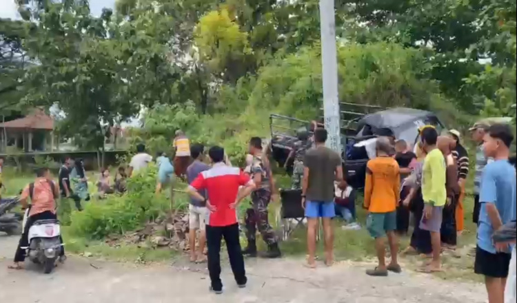 “Kendaraan mundur menabrak gundukan tanah, kemudian penumpang yang berada di bak belakang terlempar jatuh,” jelasnya.
