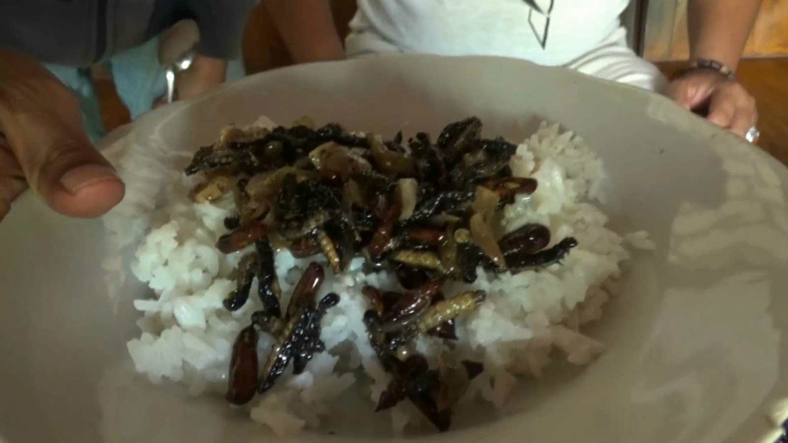 Oseng-oseng ulat dan kepompong disajikan bersama sepiring nasih putih hangat. Tanpa komando langsung saja aku santap. Seperti biasa aku tidak pernah makan menggunakan sendok. Bagiku melahap makanan dengan tangan terasa lebih nikmat.