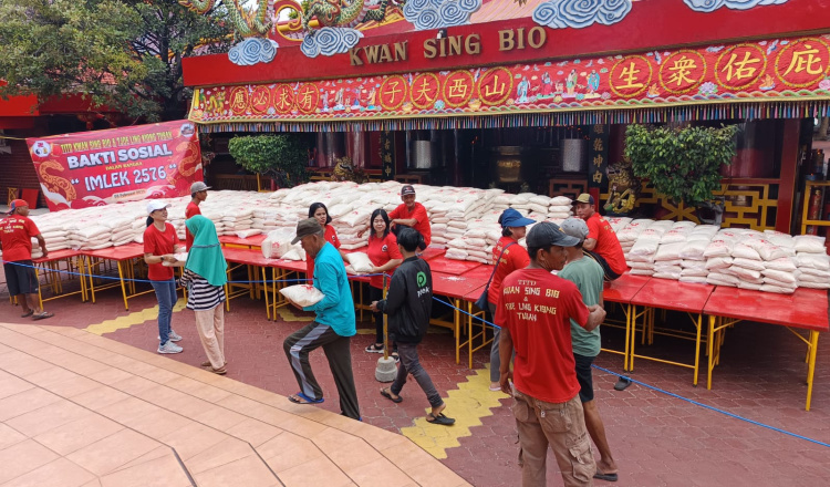 TUBAN – Klenteng Kwan Sing Bio di Jalan RE Martadinata, Kabupaten Tuban, Sabtu siang (8/2/2025) menggelar bagi-bagi beras gratis. Kegiatan bakti sosial tersebut dilakukan rutin untuk menjaga kerukunan umat beragama.