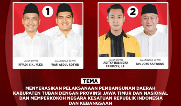 Foto kedua Paslon Bupati dan Wakil Bupati Tuban 2024 dan tema debat ketiga.