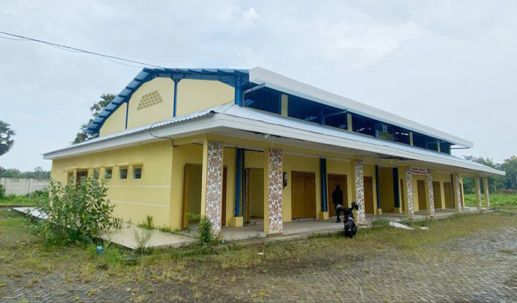 TUBAN – Pasar rakyat di Desa Penambangan, Kecamatan Semanding, Kabupaten Tuban, masih mangkrak alias belum difungsikan. Proyek senilai Rp4,1 milyar itu nampak terbengkalai, dengan halaman ditumbuhi semak belukar dan plafon yang mulai rusak.