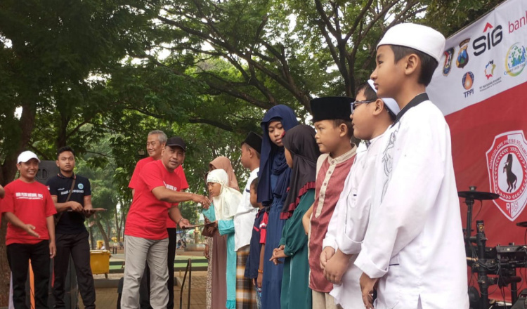 Setelah itu, para undangan dan sponsor memberi santunan simbolis kepada 100 anak yatim dan diajak untuk melepas satwa endemik nusantara seperti jenis burung kutilang, kutut, dan derkuku di Taman Kota Abhipraya.