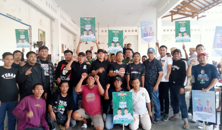 Tuban – Suporter sepakbola yang tergabung dalam kelompok Suporter Bergerak (Sorak) memberikan dukungan kepada Pasangan Calon (Paslon) Bupati dan Wakil Bupati Tuban 2024, Riyadi dan Wafi Abdul Rosyid.