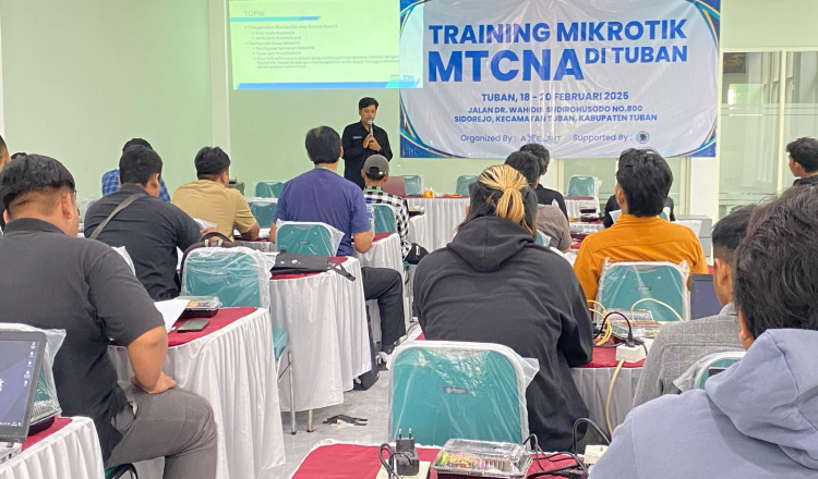 TUBAN – Paguyuban Internet Ronggolawe (PIR) Kabupaten Tuban menggelar pelatihan Mikrotik Certified Network Associate (MTCNA) di gedung lantai 2 PKB Tuban, Selasa (18/02/2025).