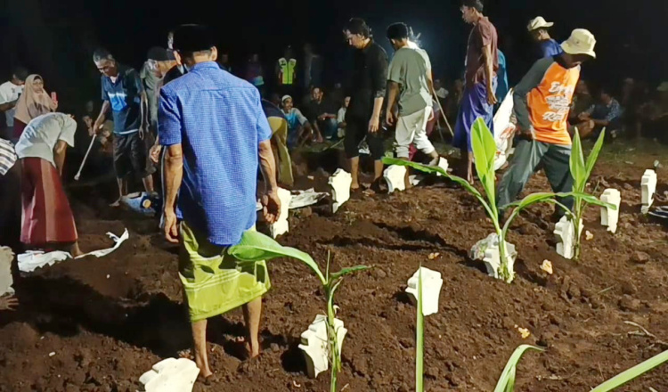 Ketujuh korban dimakamkan dalam satu liang lahat. Hal tersebut dilakukan untuk mempercepat proses penggalian dan mempermudah keluarga jika ingin takziyah.